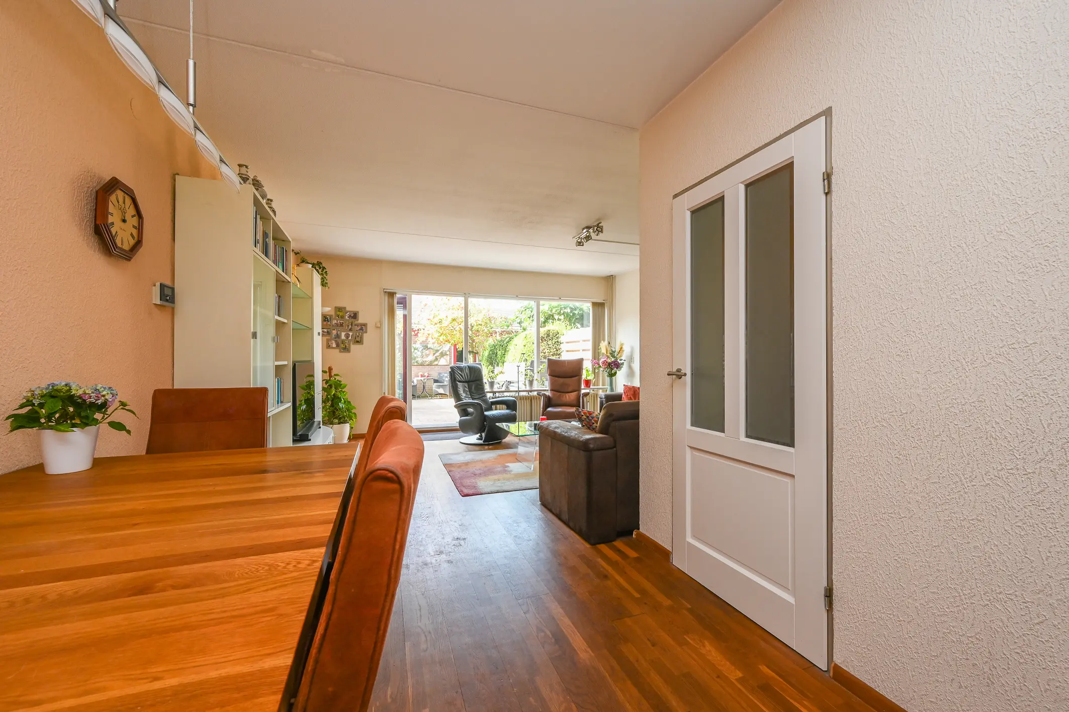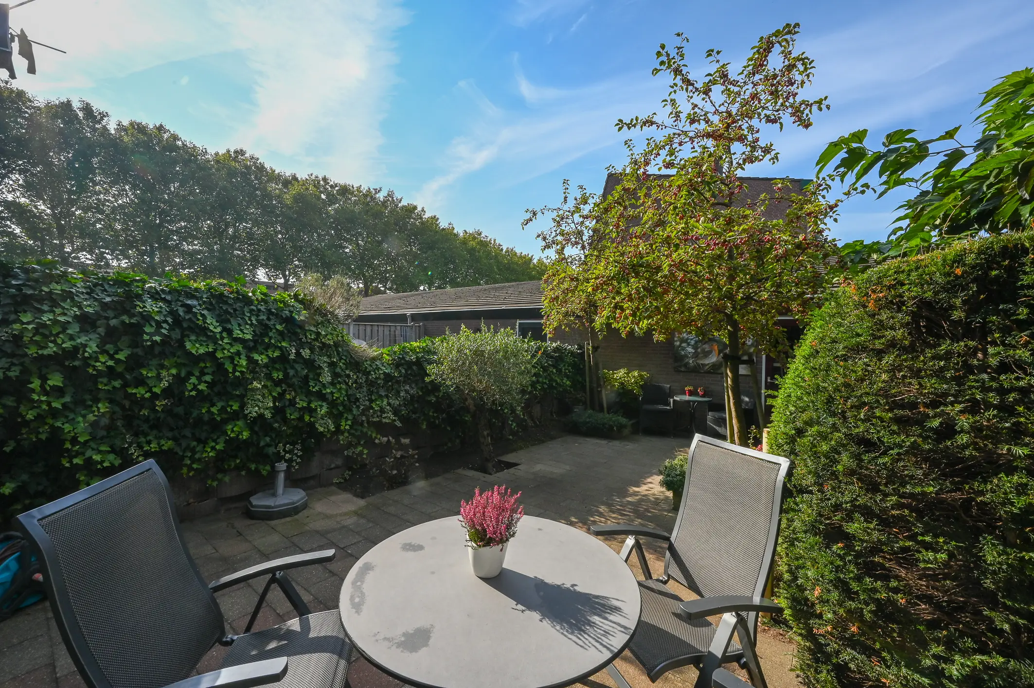 De zonnige achtertuin op het zuidwesten is de perfecte plek om te genieten van het buitenleven. Met een elektrisch zonnescherm, buitenkraan en directe toegang tot de garage is het hier heerlijk toeven. De tuin biedt zon van de ochtend tot in de late middag – ideaal voor tuinliefhebbers of gezellige borrels.