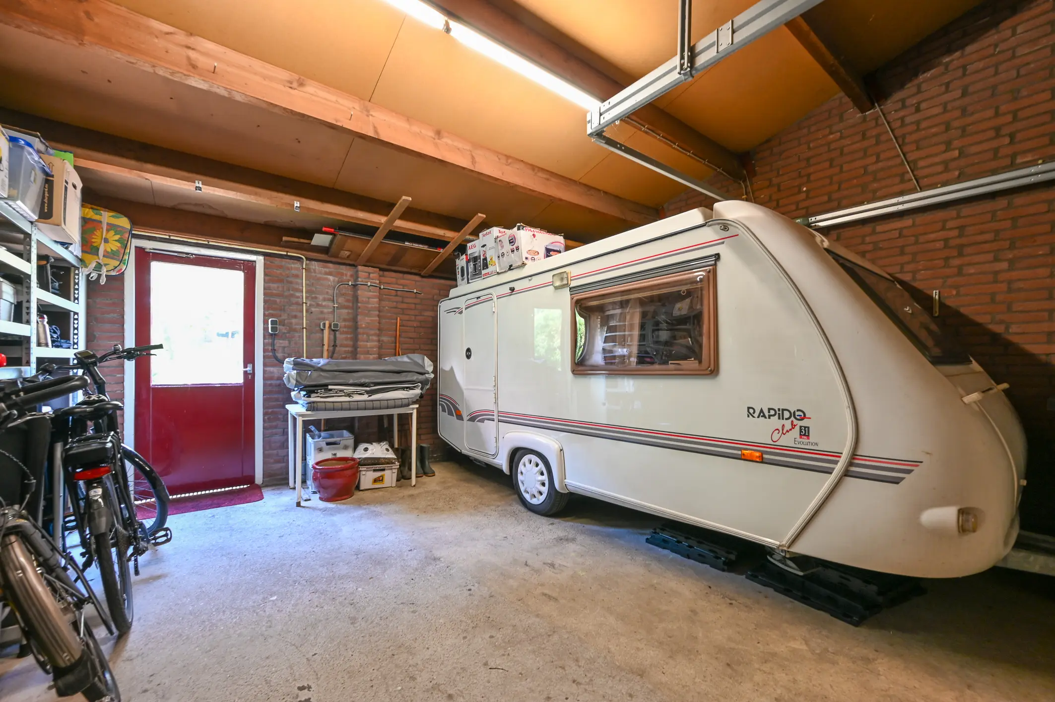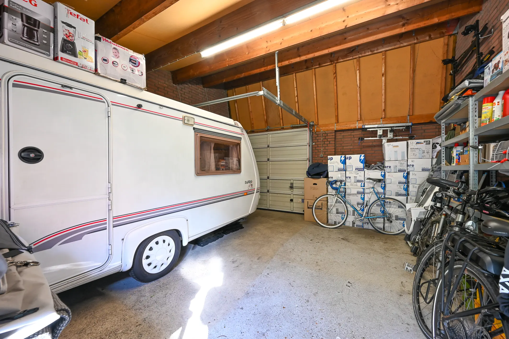 De ruime garage is multifunctioneel en voorzien van een garagedeur en meerdere elektrapunten. Perfect voor het parkeren van een auto of als hobbyruimte voor de handige doe-het-zelver.
