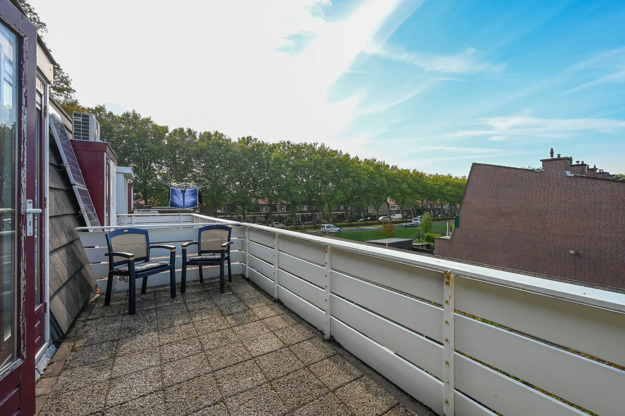 De zolderverdieping met 2 slaapkamers met beide een deur naar het dakterras aan de achterzijde biedt volop ruimte en mogelijkheden. De cv-ketel (eigendom/2013) is hier geplaatst, net als de aansluitingen voor wasmachine, droger en de mechanische ventilatie.