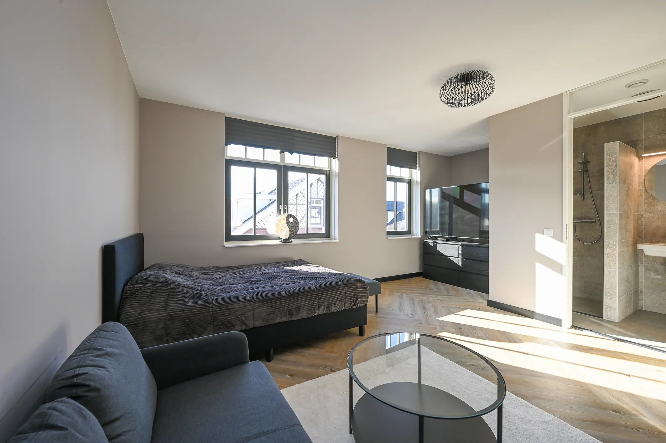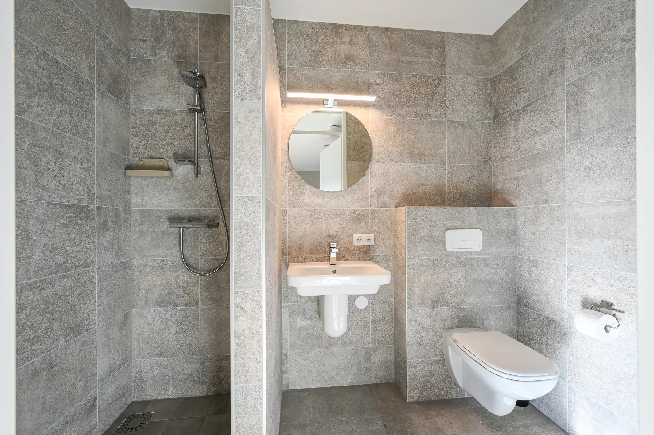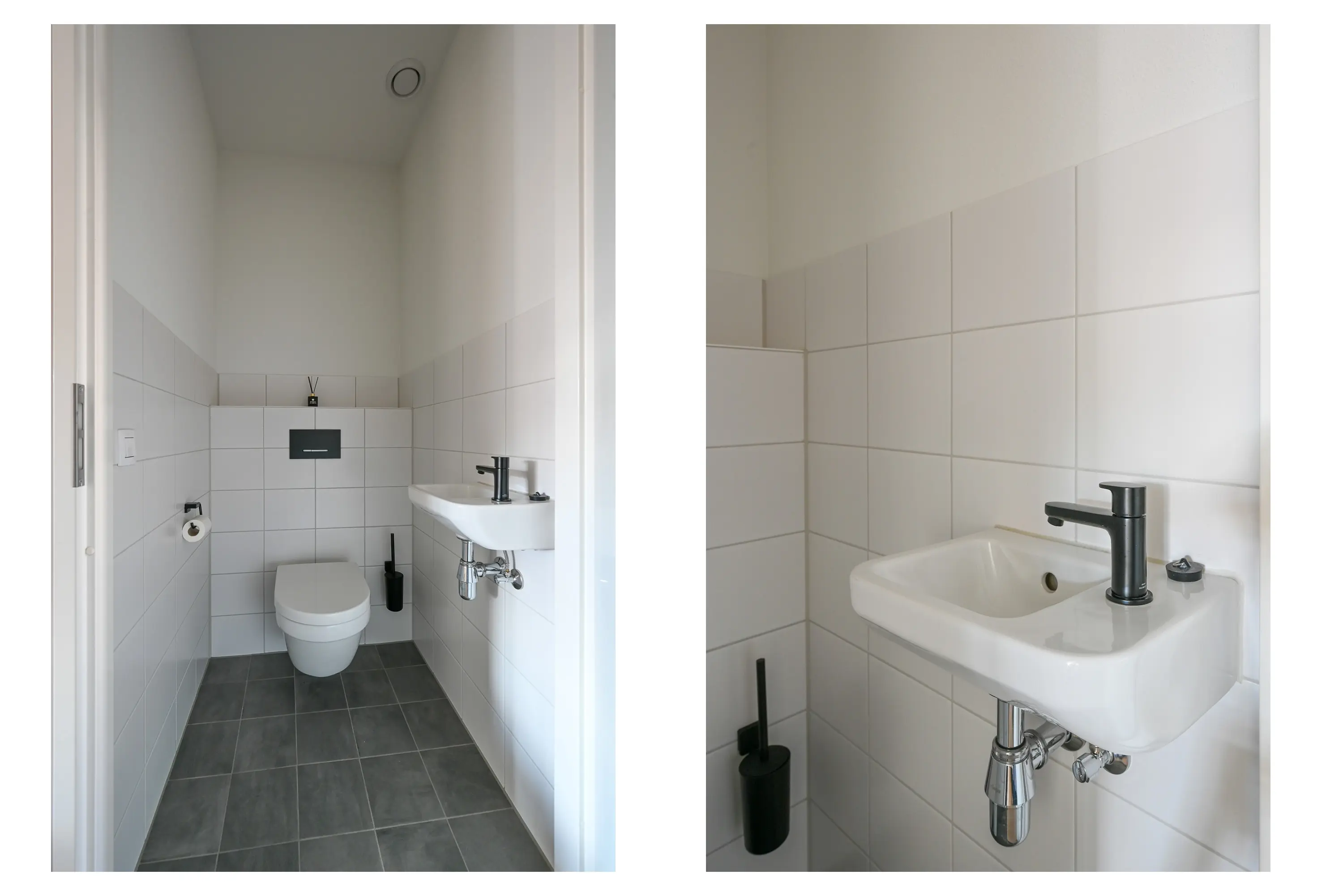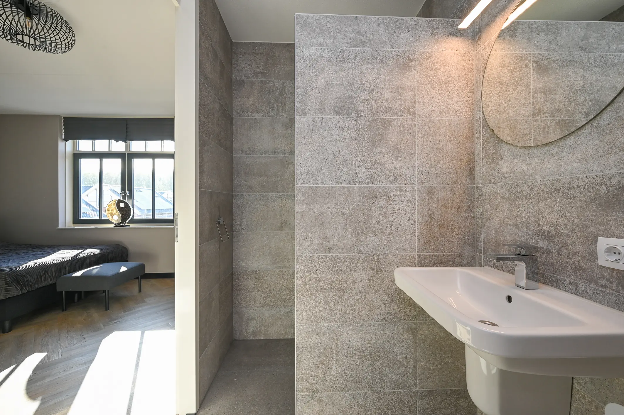 De luxe badkamer op deze verdieping is een waar wellness-oord. Met een inloopdouche, een dubbele wastafel en een modern design is deze ruimte perfect om na een drukke dag tot rust te komen. Daarnaast bevindt zich op de eerste verdieping een separaat toilet met een fonteintje, zodat deze verdieping nog praktischer is.