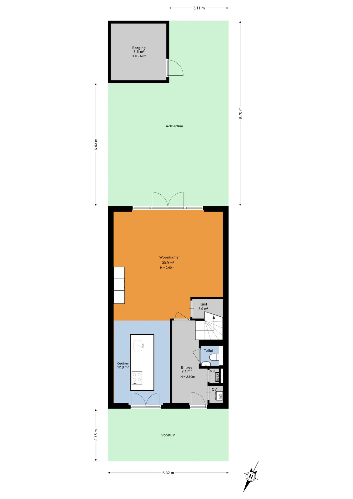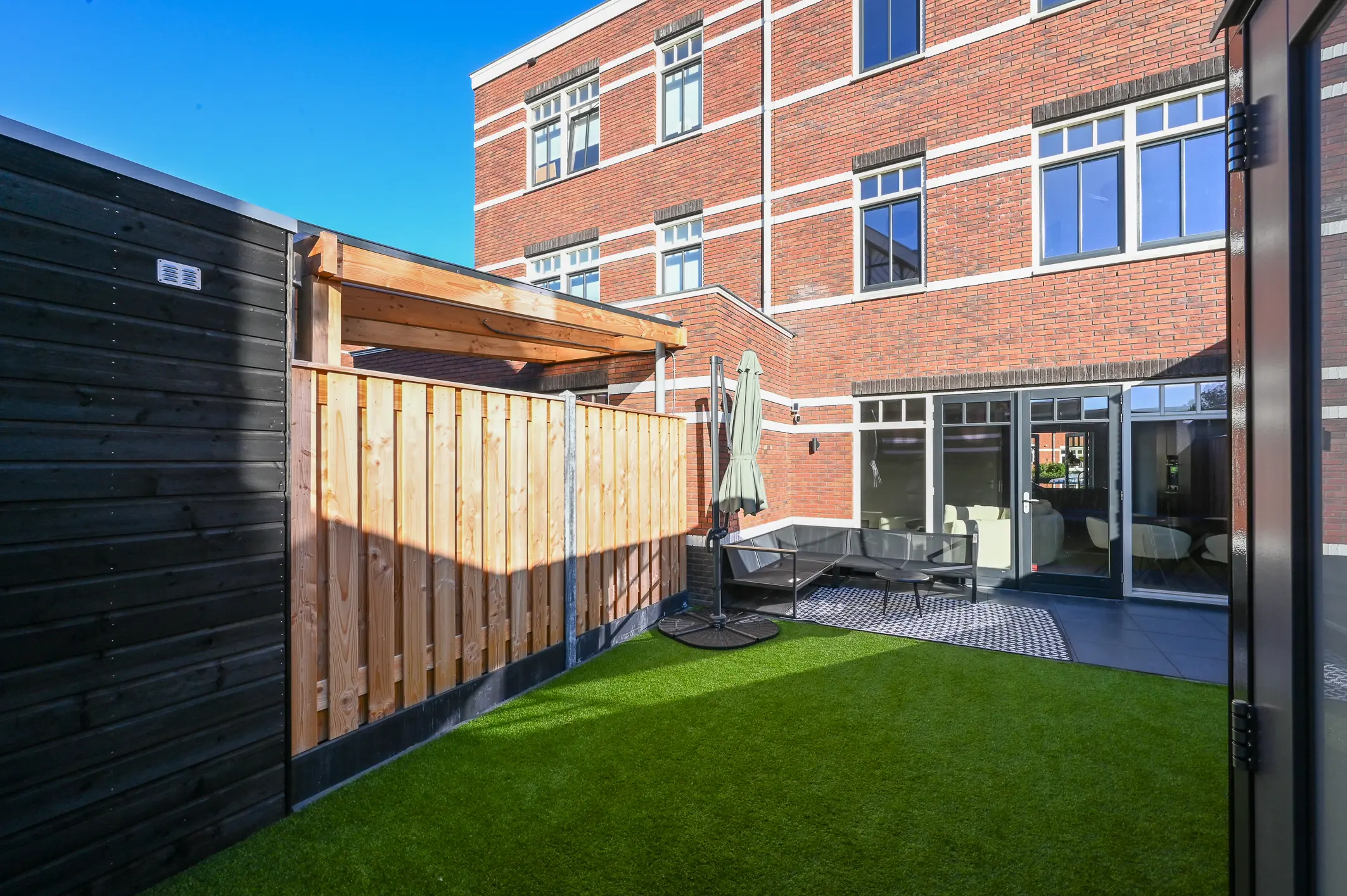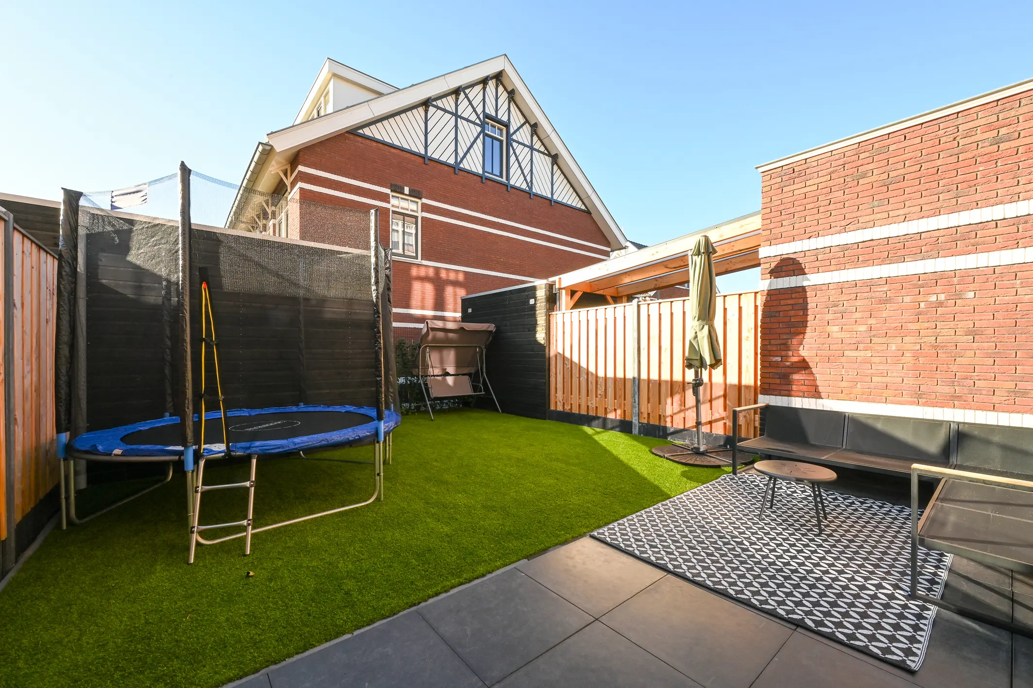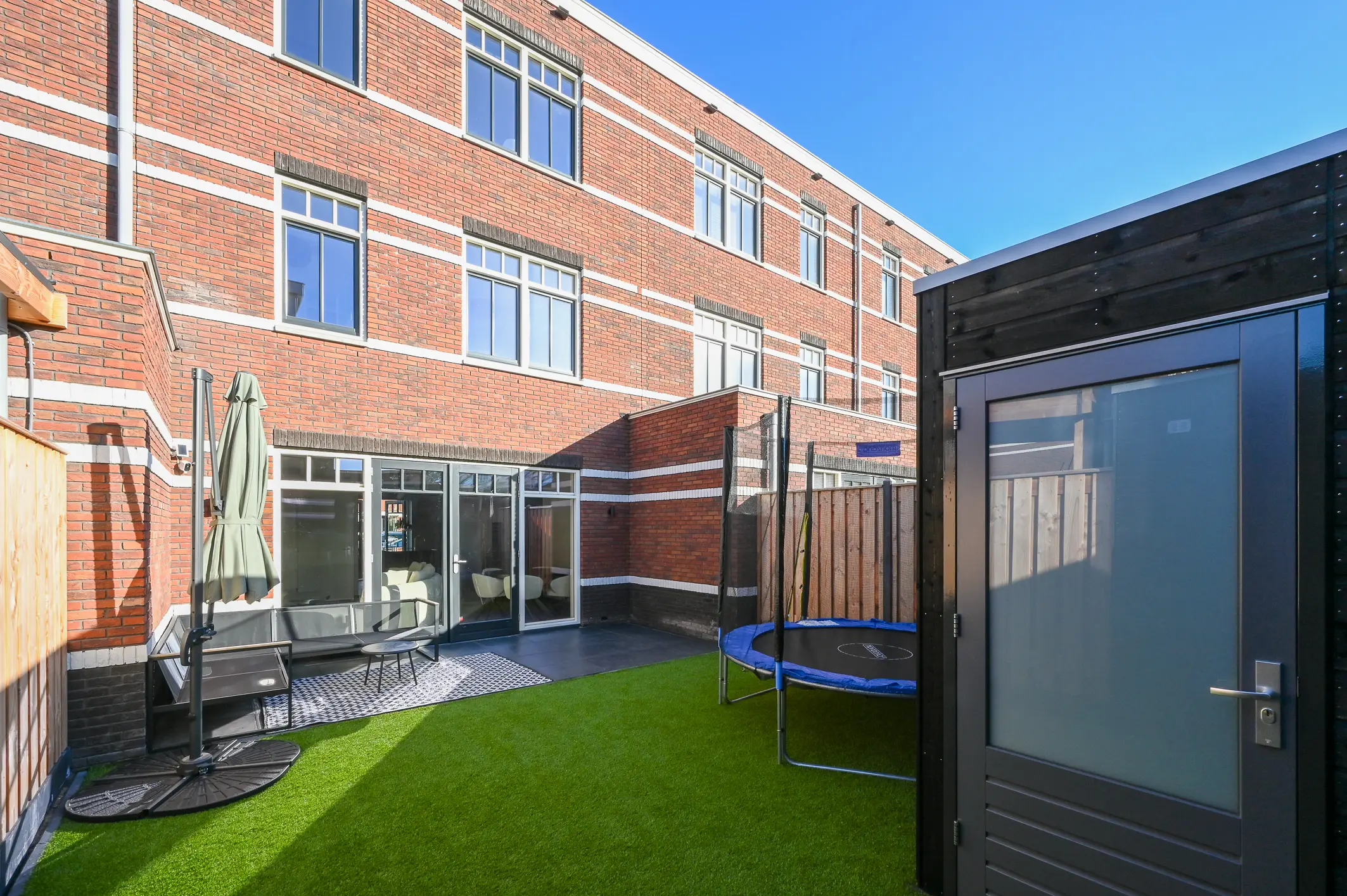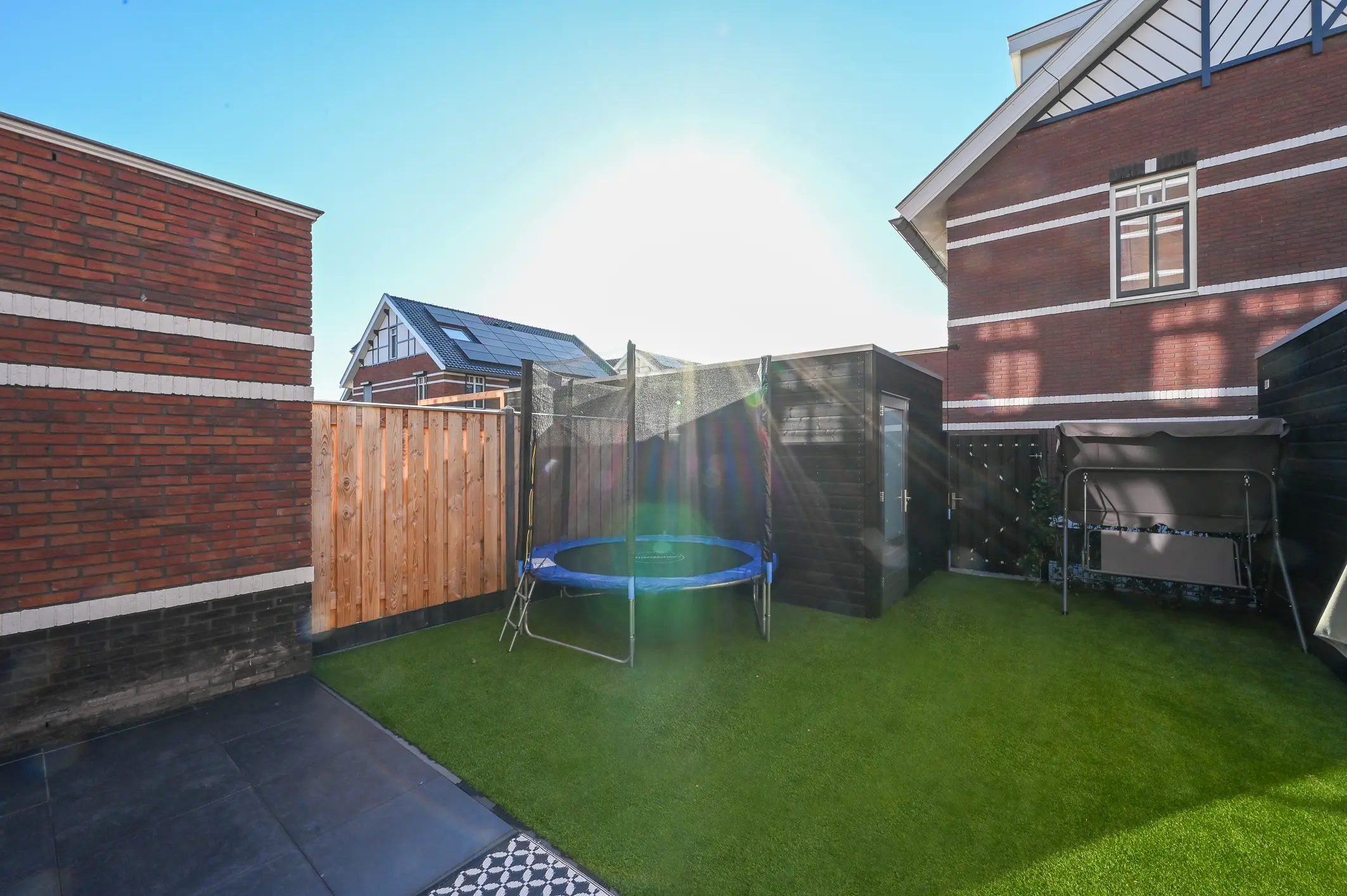 De achtertuin is luxe aangelegd en biedt veel privacy. Er is een houten berging voor extra opslag en via een achterom heeft u gemakkelijk toegang tot de straat. De tuin is een heerlijke plek om te genieten van de buitenlucht, of het nu gaat om een rustige ochtend in de zon of een gezellige barbecue met vrienden.