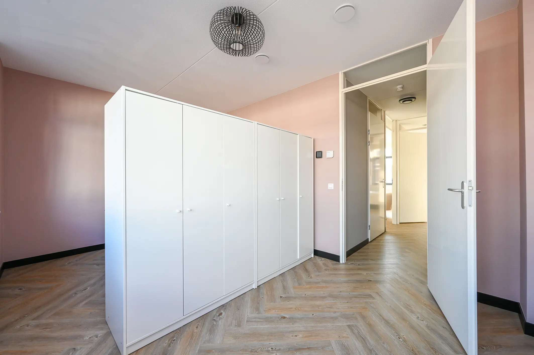 Daarnaast is er op de begane grond een vaste kast voor extra opbergruimte, ideaal voor bijvoorbeeld het opbergen van jassen en andere spullen.