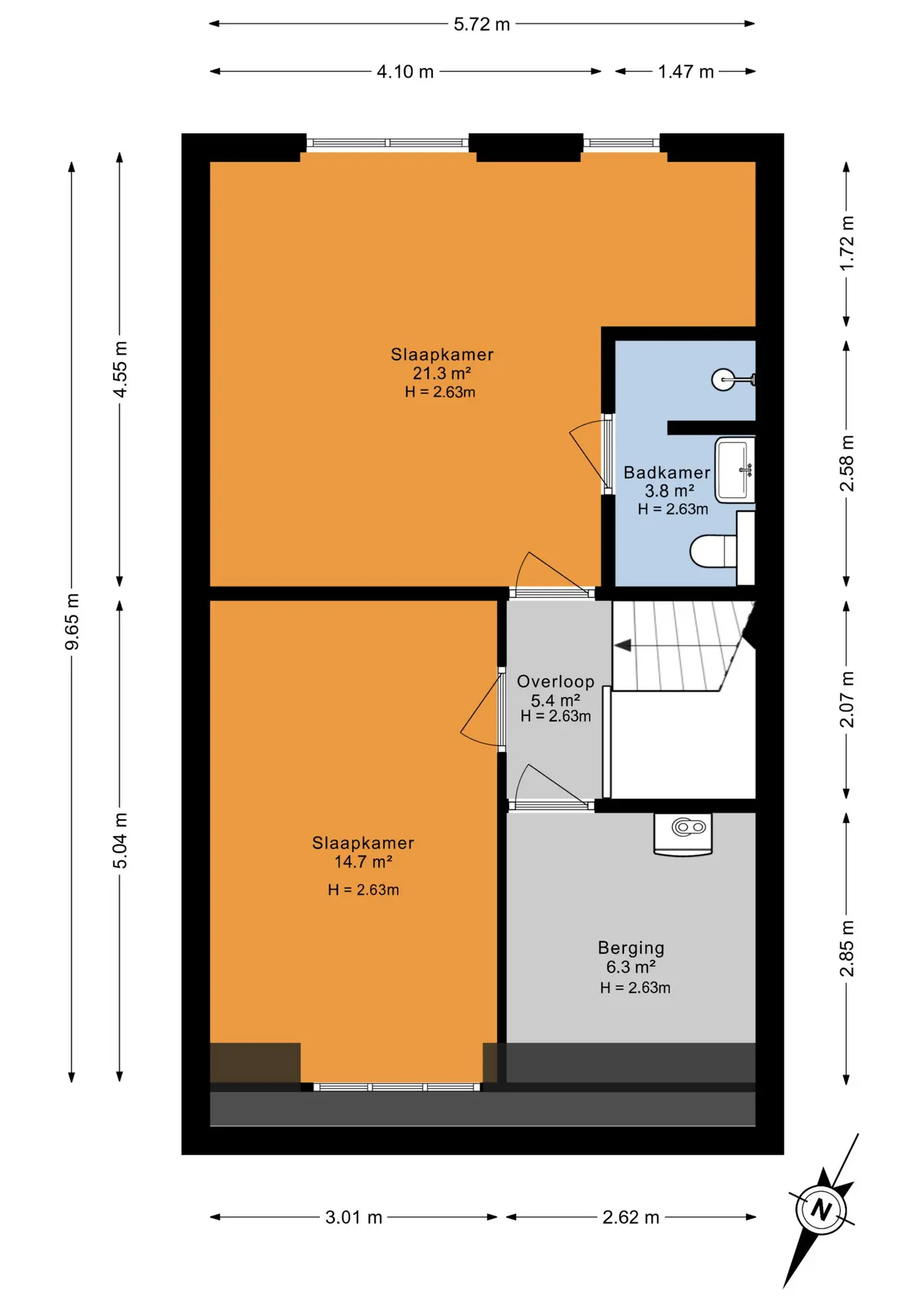 Op de tweede verdieping vindt u een ruime overloop die toegang biedt tot twee slaapkamers en een tweede, luxe badkamer. De ruime berging van ca. 6 m² en is voorzien van de warmtepomp en biedt daarnaast veel extra opbergruimte.