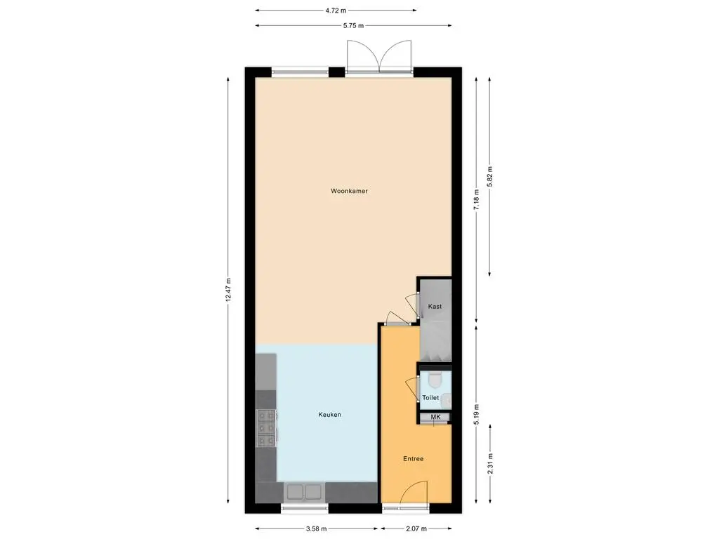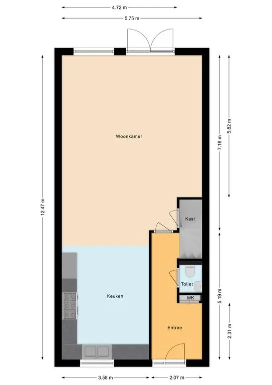 Bij binnenkomst betreed je een ruime hal meterkast en toilet. Een vaste trap leidt vanuit de hal naar de bovenverdiepingen, waardoor het huis een gevoel van ruimtelijkheid en verbondenheid geeft. De hal leidt vervolgens naar de centrale leefruimte van het huis, de woonkamer. Deze woonkamer is uitnodigend en licht, met grote ramen die zorgen voor veel natuurlijk lichtinval en openslaande deuren die directe toegang bieden tot de achtertuin. Aan de voorzijde van de woning bevindt zich de open keuken met inbouwapparatuur en voldoende kastruimte. De keuken is voorzien van een oven, magnetron, vaatwasser, boiler, spoelbak, afzuigkap en een 5-pits gasstel, waardoor koken een plezierige ervaring wordt. Een handige apothekerskast biedt extra opbergruimte en houdt de keuken netjes en georganiseerd. Vanuit de woonkamer en keuken heb je een prachtig uitzicht op de zonnige achtertuin, die op het Westen is gelegen en is voorzien van een handige houten berging en een achterom, wat zorgt voor gemakkelijke toegang tot de tuin.
