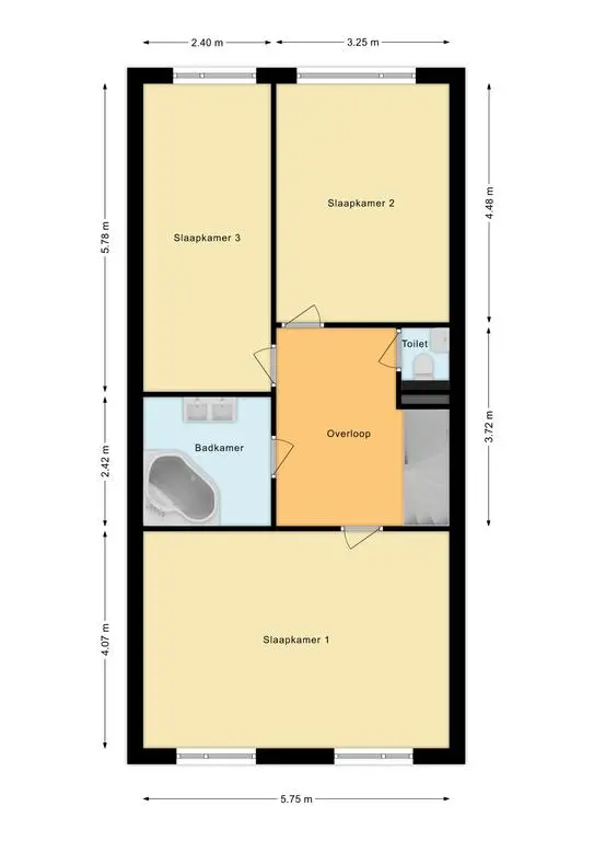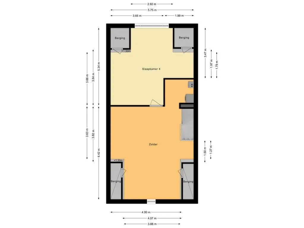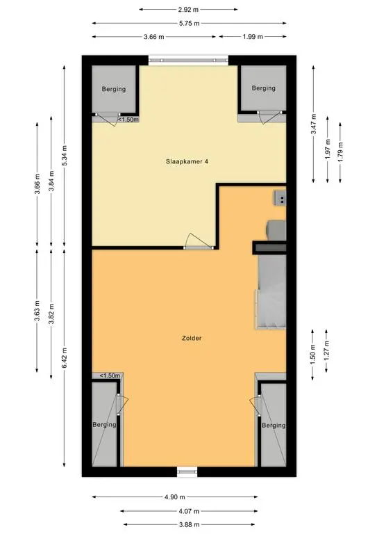 De tweede verdieping bestaat uit een overloop die leidt naar een open ruimte aan de voorzijde van het huis, die gemakkelijk kan worden omgezet in een extra slaapkamer, kantoorruimte of speelkamer. Aan de achterzijde bevindt zich een slaapkamer met een dakkapel, die zorgt voor extra ruimte en licht. Daarnaast is er een aparte wasruimte op deze verdieping, waar de CV-combiketel en wasmachine-aansluiting zijn geplaatst, wat zorgt voor een efficiënte en georganiseerde wasruimte. Deze verdieping biedt veel flexibiliteit en mogelijkheden om de ruimte aan te passen aan de behoeften van de bewoners.