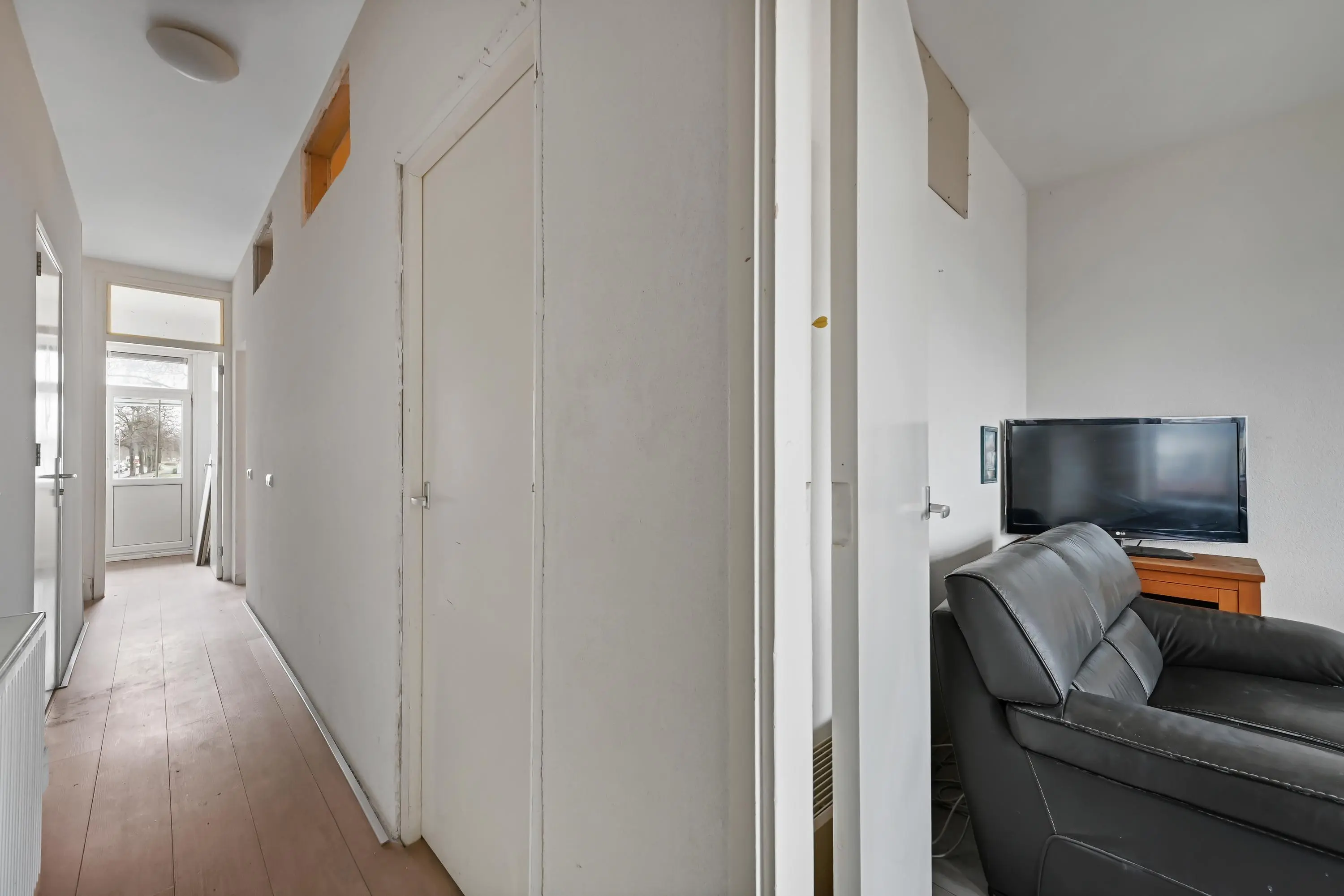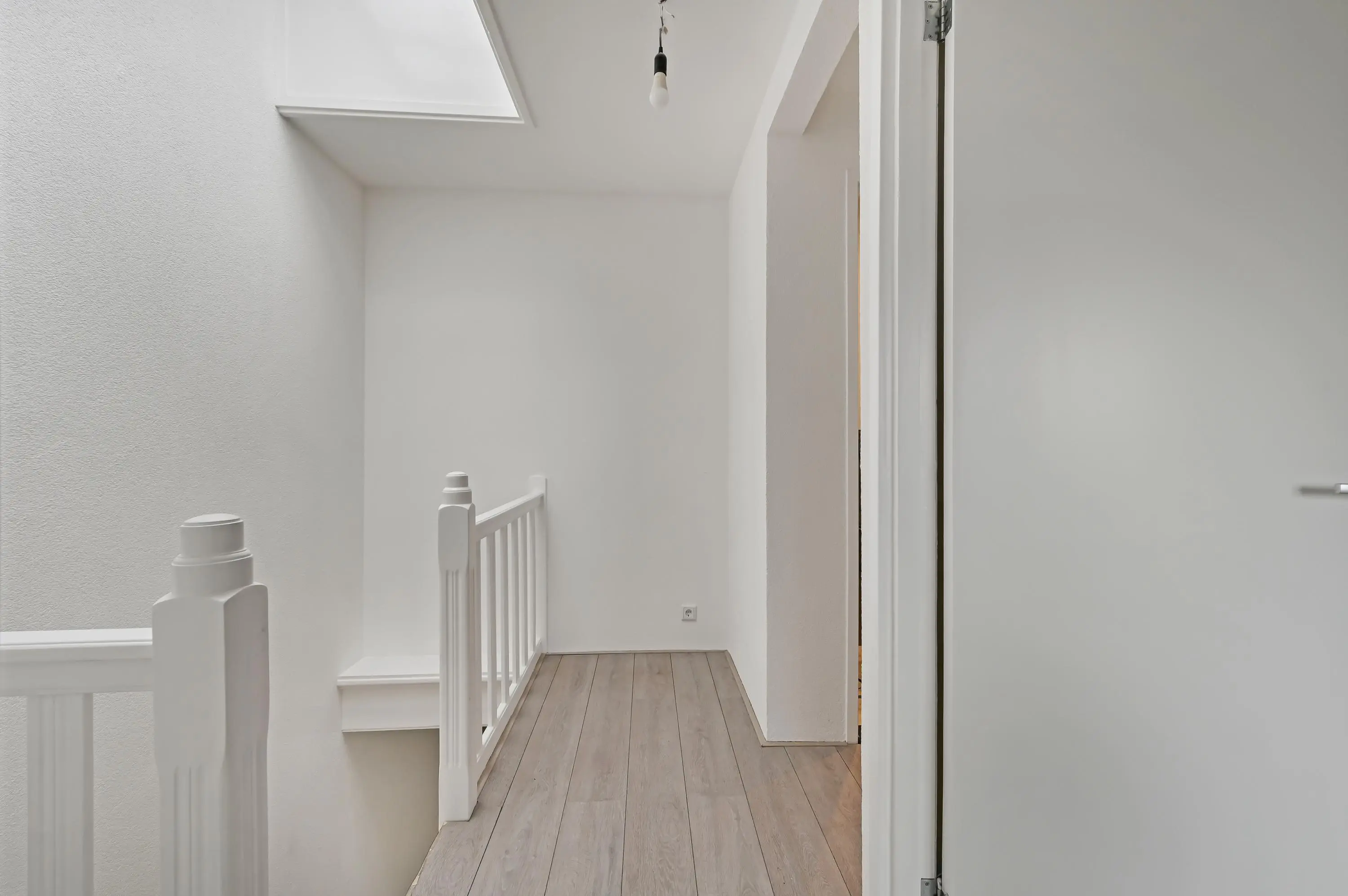 - Strak gestuukte wanden op de tweede etage