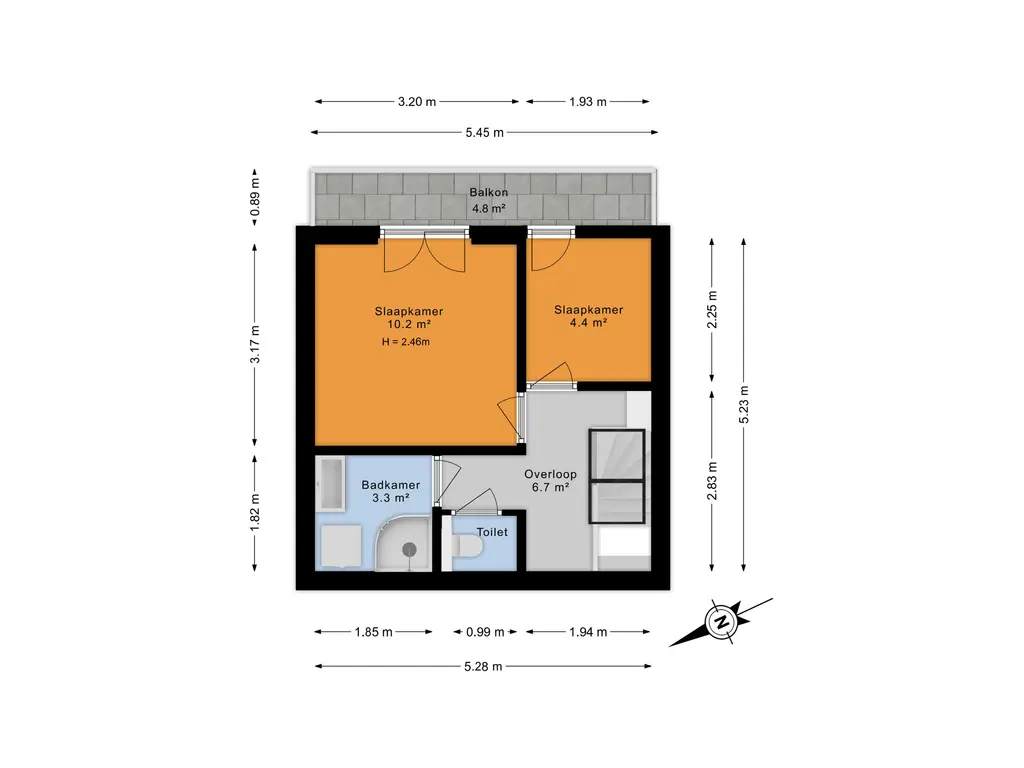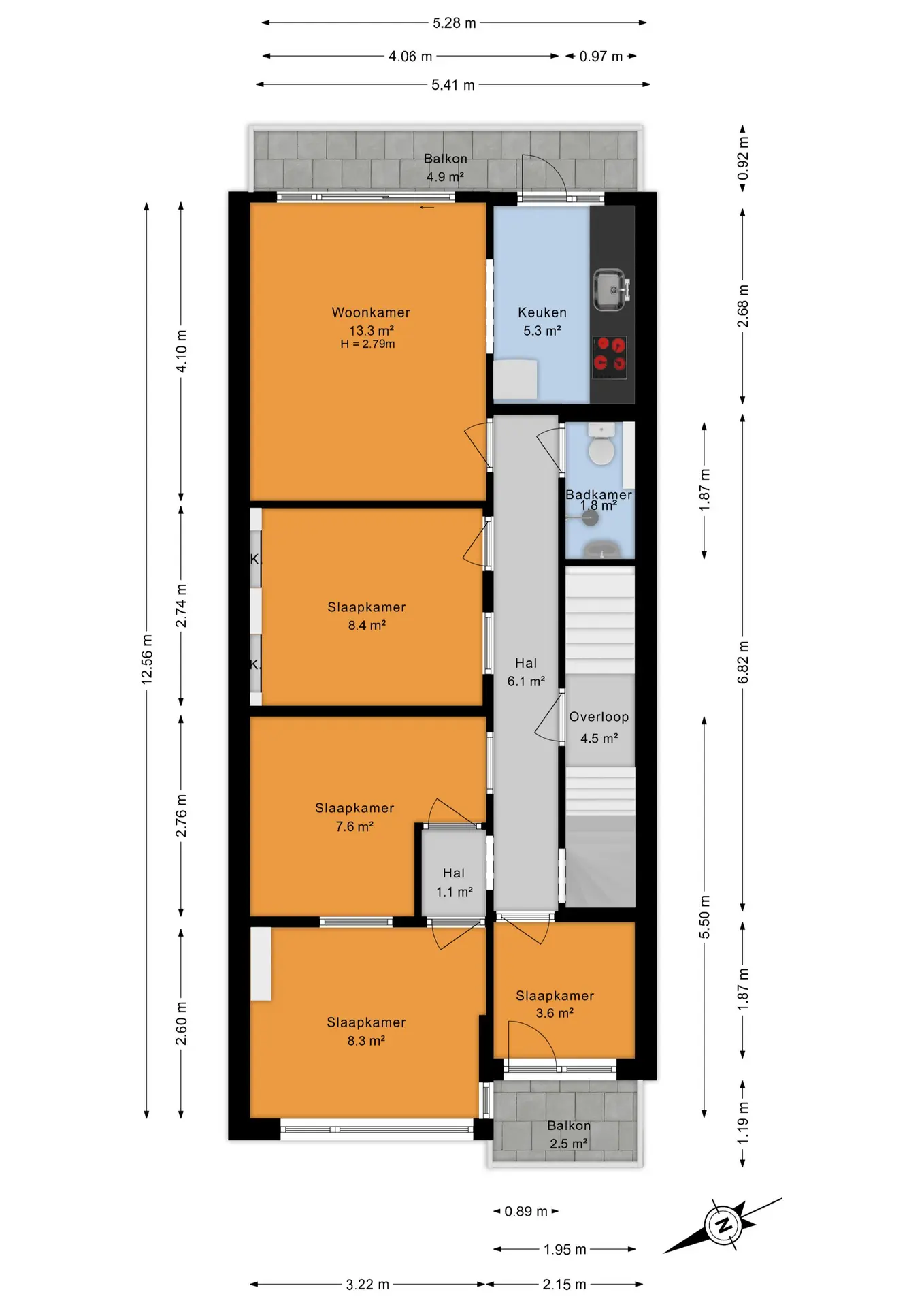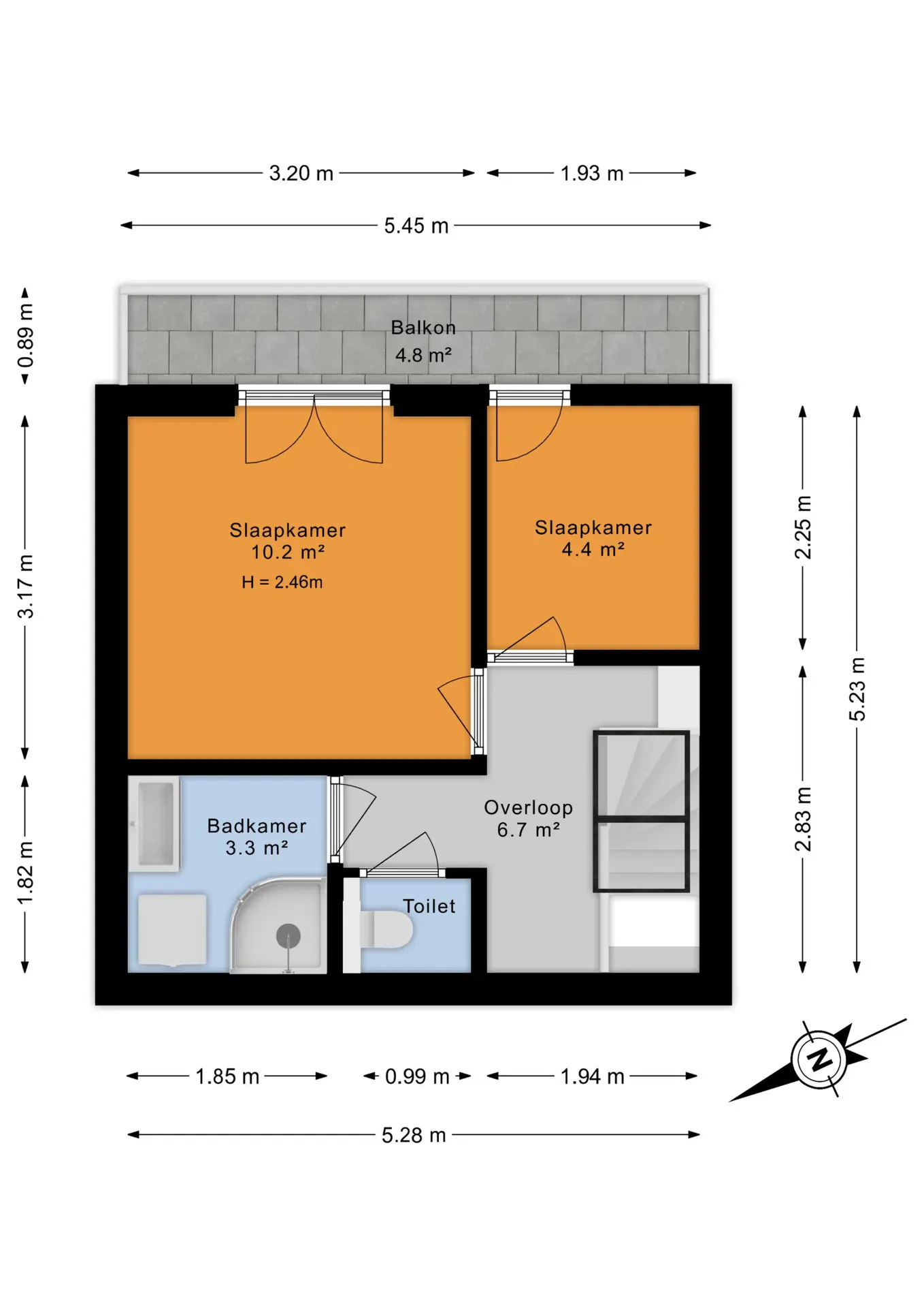 Via de trapopgang bereik je de tweede woonlaag. Hier bevinden zich nog twee slaapkamers, eveneens gelegen aan de achterzijde van de woning. Vanuit één van deze kamers is er toegang tot een extra balkon.